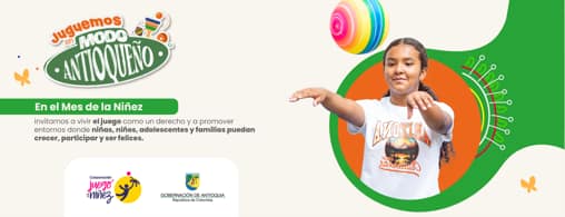 Durante este Mes de la Niñez, en Antioquia reafirmamos que las niñas, niños y adolescentes están en el centro de nuestras acciones. Es por esto que con una amplia movilización social, enmarcada en los Festivales del Juego por la Niñez, el departamento celebrará con más de actividades lúdico-pedagógicas, acompañadas de alegría, diversión y que juntos juguemos en Modo Antioqueño.