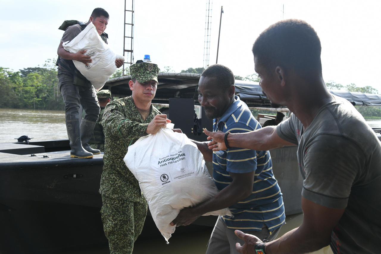 Durante cuatro días la Gobernación de Antioquia, con el apoyo de la Armada Nacional, llevó 15 toneladas de ayudas humanitarias a las familias afectadas por las lluvias en los municipios de Murindó y Vigía del Fuerte. Crónica de una travesía para llegar a donde los antioqueños lo necesiten.