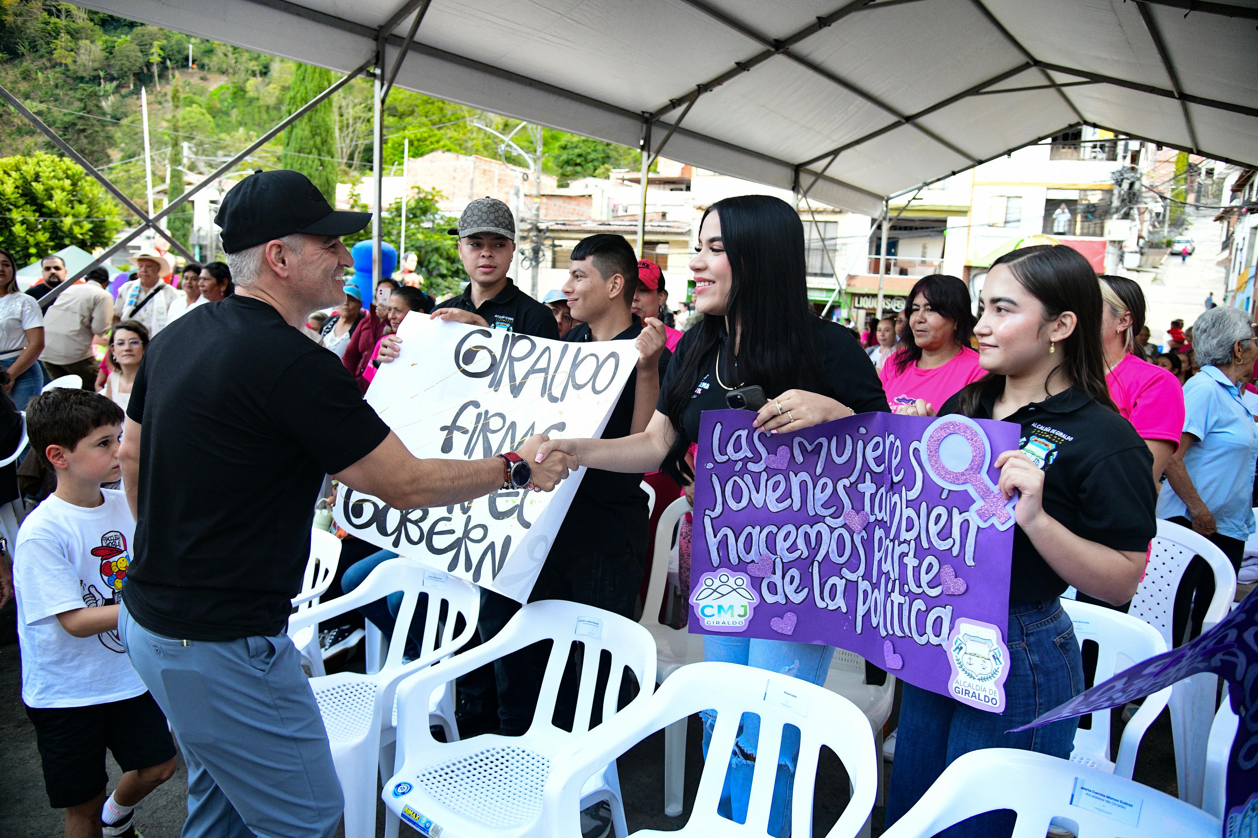 "En Giraldo, gracias al apoyo de las Duplas psicojurídicas de la Secretaría de las Mujeres de Antioquia vemos mayor participación de las mujeres en espacios como las juntas de acción comunal, las personerías escolares, en la autonomía económica y como se organizan en asociaciones", señaló la alcaldesa María Camila Manco.